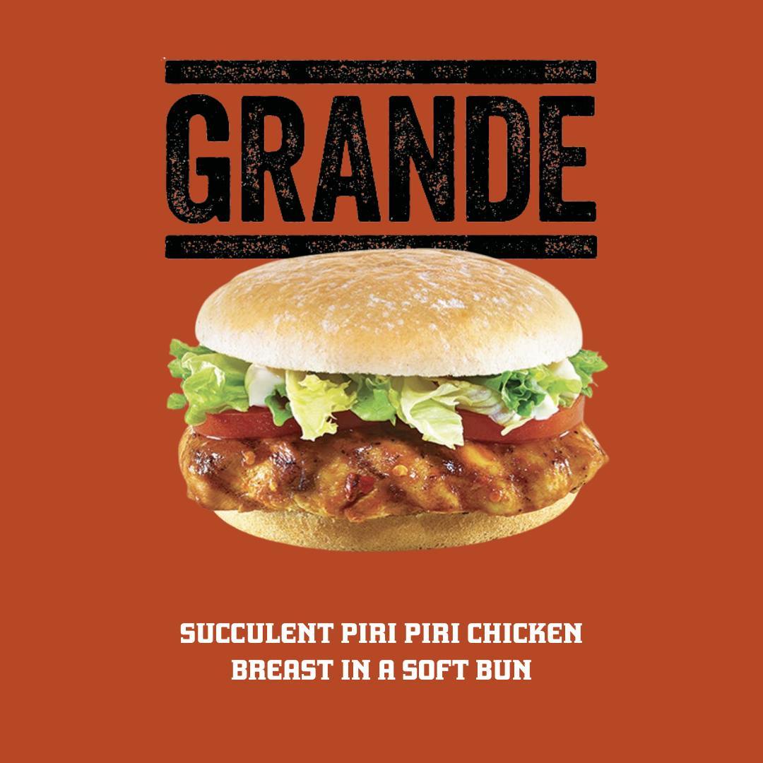 Succulent Piri Piri Chicken Breast in a Soft Seedless Bun with Mayo & Lettuce.